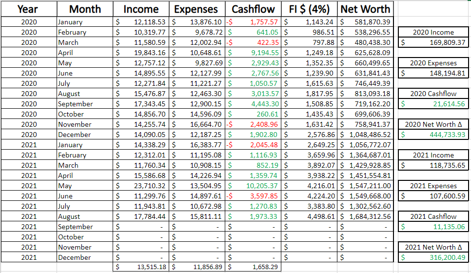 Map your path to financial independence by tracking monthly cashflow and net worth.