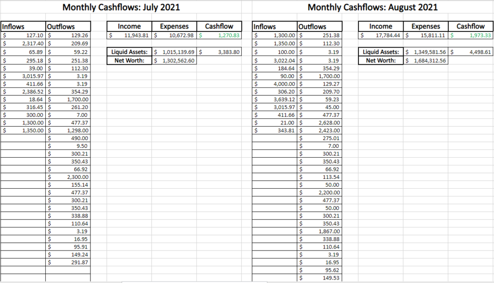 Each month you will take 10-15 mins to review your numbers. Head to your online banking and select the prior months transactions. Start in the 'Inflow' column by recording the money that has entered your account from ALL sources. The only items I omit are one-off transactions like money I have transferred in from other accounts or my brokerage. You want this column to be recording NEW money that has come into your possession the previous month.